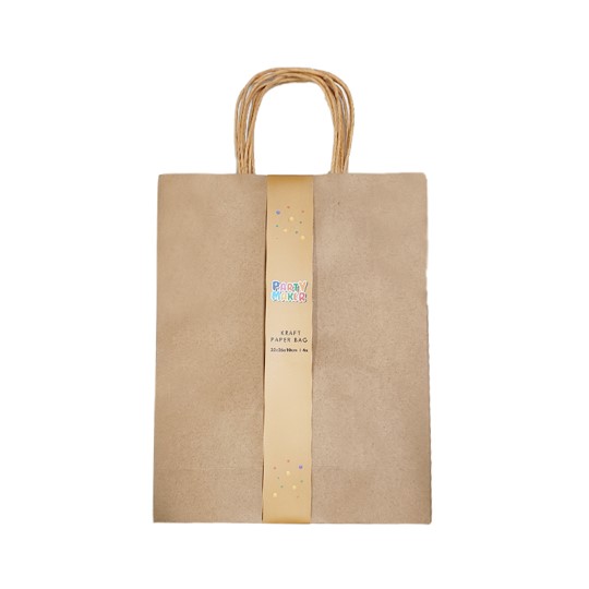La bolsa de papel Kraft es ideal para regalos o usar para cualquier detalle. Ofrece elegancia, resistencia y protección durante el transporte. Además, es una opción sostenible por ser biodegradable y reciclable.